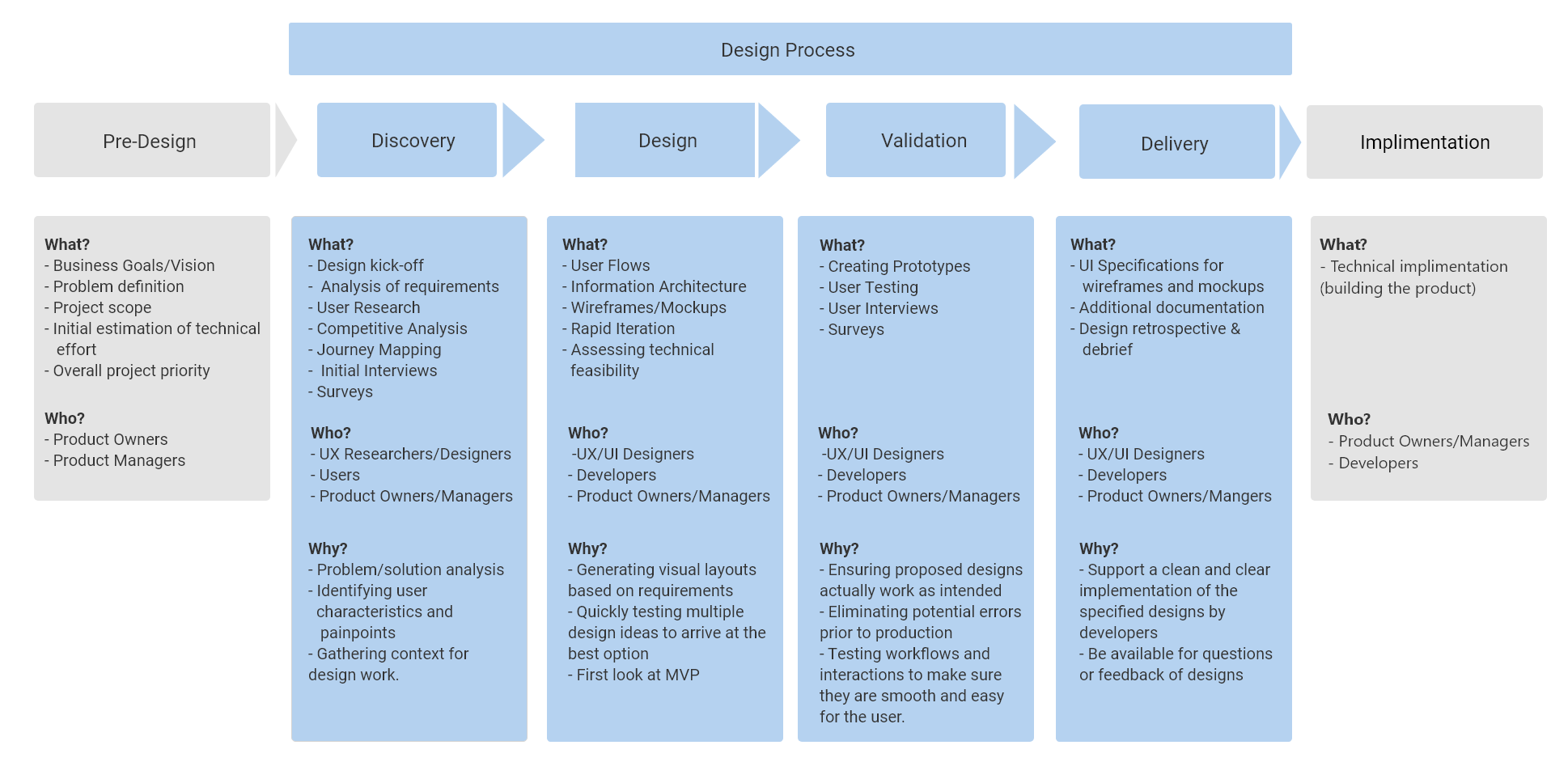 Once our team had its bearing we began to build a user research program, essentially from the ground up. In addition to participating in client interviews myself, one of my goals was to bring on board a dedicated user researcher. While we had ways getting user feedback, I wanted to make sure that for the long term support of the project we had a process whereby we could talk directly with users, create designs, and then get feedback on those designs throughout the life of the project and beyond.