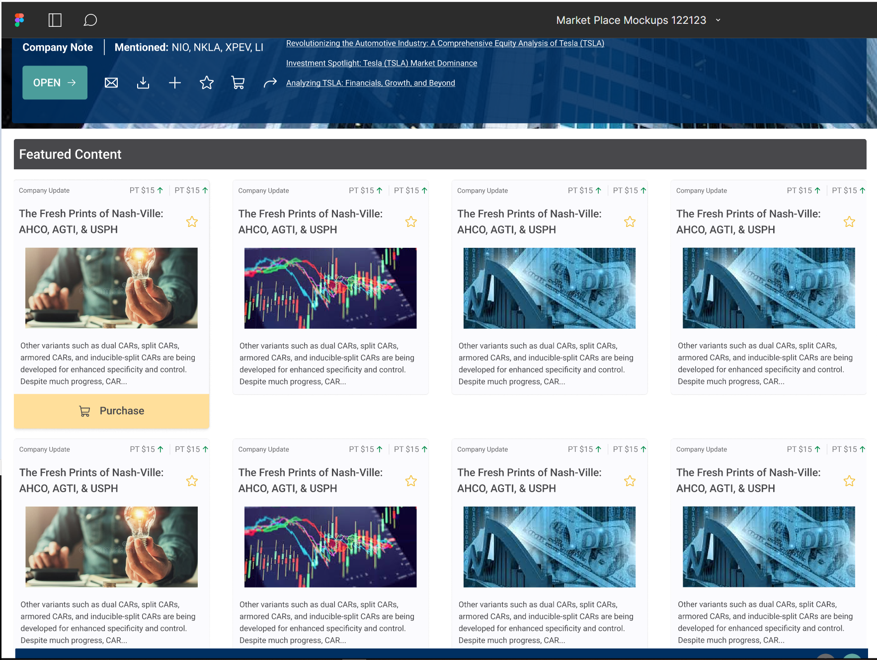 By the end of the day, we had a front page we really liked. Some cool hover states for our cards to help distinguish this platform as more of a store front other applications that are more readership and library focused.